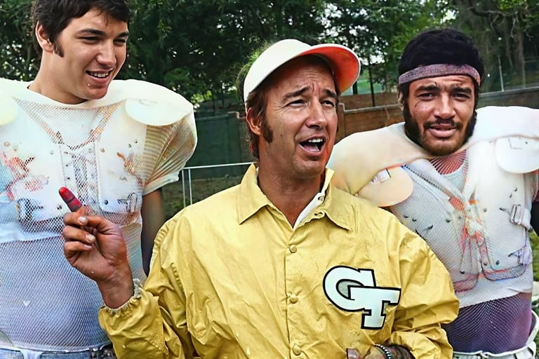 Head Coach Pepper Rogers, with Captains Billy Shields & Joe Harris