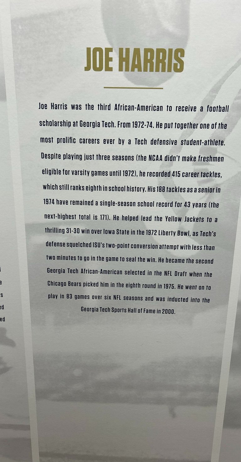 A graduate of E.E. Smith High School, Harris emerged as a standout defensive leader at Georgia Tech, where his combination of power, preparation, and instinct cemented his reputation as one of the most productive linebackers in program history. Over his collegiate career, he recorded 415 tackles, including 188 in a single season, and went on to be inducted into the Georgia Tech Athletics Hall of Fame (RamblinWreck.com, Georgia Tech Athletic Association, archived September 18, 2011).